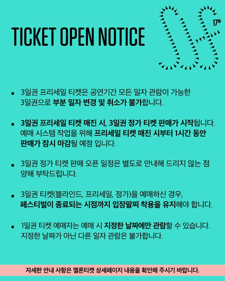 - 멜론티켓 앱 미리 설치하기 (모바일티켓으로만 입장 가능)